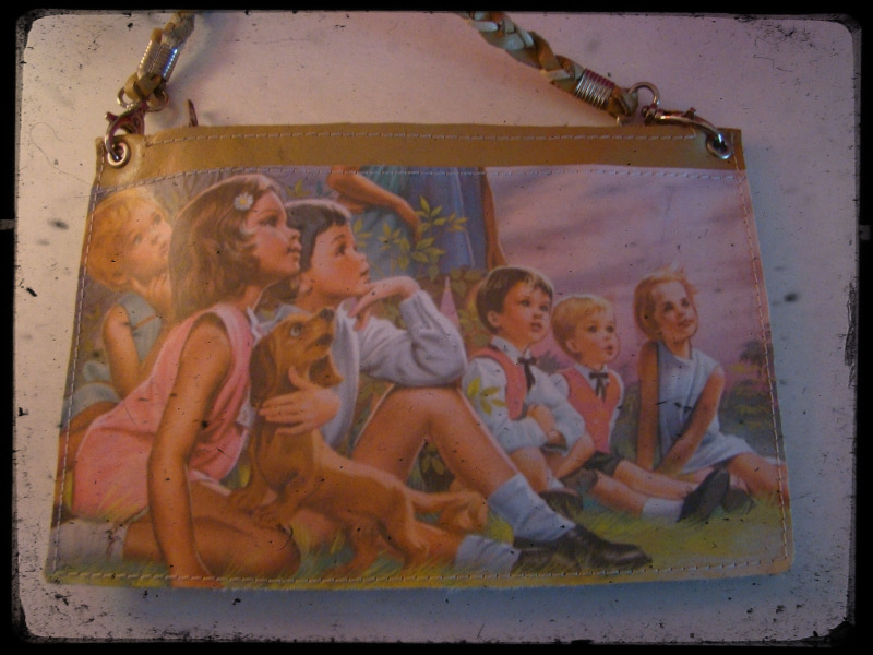 A biscoitinho tentou ajudar-me a escolher e a eleita foi uma bolsinha de pele com a ilustração do livro "Anita e a Festa de Anos".